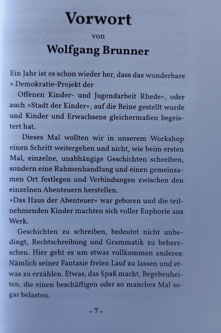Als Leiter des „Verlags“ durfte ich 2024 erneut eine Gruppe hochmotivierter Nachwuchsautoren begleiten. Während im Rathaus der Kinderstadt debattiert wurde, rauchten im Verlag die Köpfe. Innerhalb von nur zehn Tagen ist unter meiner Anleitung ein weiteres, jetzt schon rund 200 Seiten starkes Buch entstanden.